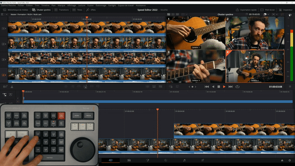 Apprend à utiliser l'option mutlicaméra de la page CUT tout en utilisant le Speed Editor. Le clavier permet de sélectionner et d'importer rapidement ses différents angles de caméra.